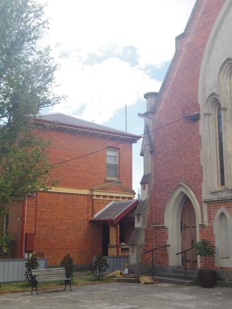 Ballarat’s population has a strong Cornish element, a legacy of the gold rush. This made the city a stronghold of Wesleyan Methodism (Wesleyans and other Methodists amalgamated in Australia in 1902 to form the Methodist Church). The historian Geoffrey Blainey records in his memoirs that when his father went there as a minister in 1941, the Ballarat Methodists had more churches – eleven – than the Anglicans and Roman Catholics put together. That remained the case until forty years ago. But in 1977 Methodist congregations in Ballarat were subsumed into the new Uniting Church, which has since proceeded to sell off many of the former Methodist buildings, partly at first because of “duplication” in combined parishes and more recently as part of a “consolidation” of Uniting Church assets. The Pleasant Street church is one of the recent sales in Ballarat, along with former Barkly Street Methodist church on Bakery Hill in East Ballarat.