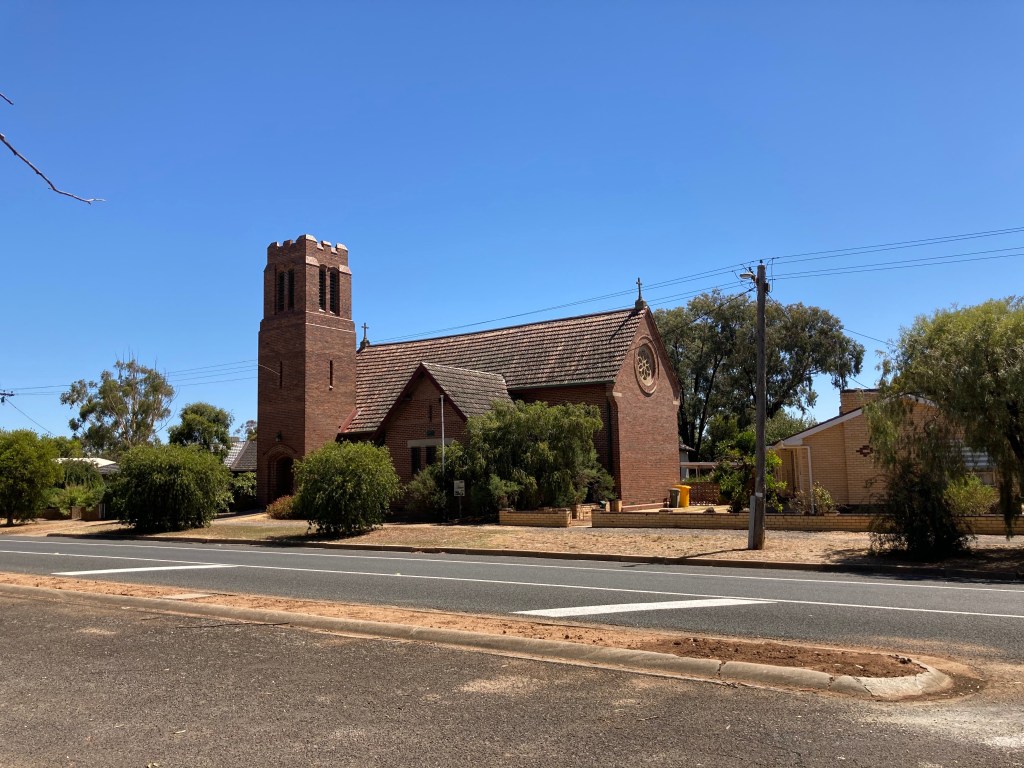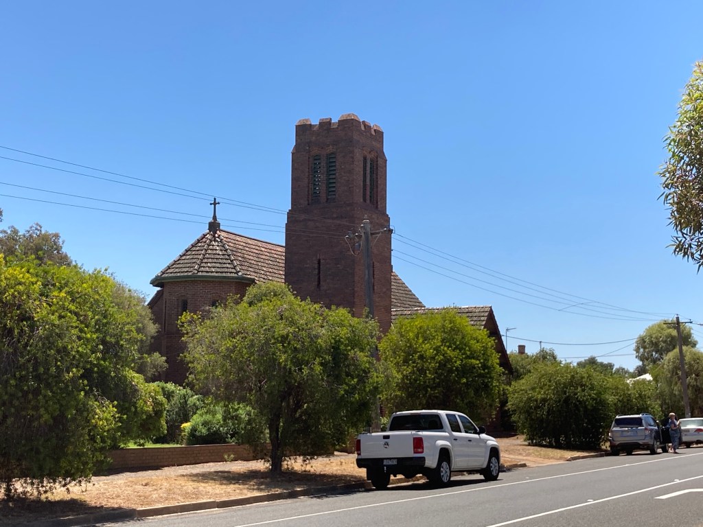 The internal reality is sad. This is a Marie Celeste of a church: everything is in order except that no one’s there, even on Sunday, since there are now no regular services, though this will change after the pandemic, and weddings and funerals still occasionally take place. Pews, font, lectern are all intact; the altar still has its cloth and candlesticks, though the brass is tarnished, as are the memorial plaques on the walls. There would once have been a ladies’ guild to attend to this. Rupanyup was an independent parish until about 20 years ago and there is a “new” (in 1966) cream-brick vicarage beside the church, an unhappy contrast to Williams’s design and now let. Today the rector lives 46 kilometres away in Horsham and such worship as there is is led by two indomitable local women who are also the congregation and church cleaners.