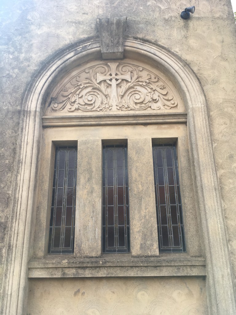This one, though, is a later addition, an afterthought from the 1930s. Though more like a chapel than a church in size, St Thérèse of the Little Flower is one of the best churches in Ballarat. It was designed by the prolific Melbourne architect P. J. O’Connor in the Italian Romanesque style at which he excelled and which was much in demand for RC churches up to the 1960s (St Columba’s, North Ballarat; St Roch’s, Glen Iris). Its square tower, chamfered at the corner with buttresses, has just a soupçon of Hollywood Art Deco in the filigreed bell openings, just as its gable has a Spanish Mission touch (O’Connor was good at these stylistic juxtapositions). The round floral window in the main façade is worthy of note, as are the tympana in bas-relief over the main door and west windows.